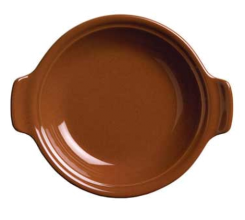 (Formerly Syracuse China) Baker, 11-1/4 oz., 8-3/4"L x 7-1/4"W x 1-1/2"H, round, handled, fully vitrified, polished foot, Terracotta™ clay, terracotta brown (12 each per case)