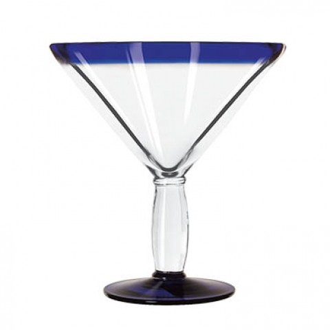 Cocktail Glass, 24 oz., with cobalt blue rim, anneal treated, dishwasher and microwave safe, hand blown, glass, Aruba (H 7-5/8"; T 6-1/2"; B 4"; D 6-1/2") (12 each per case)