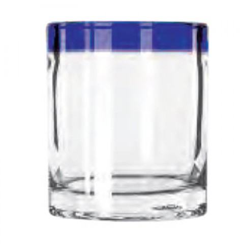 Rocks Glass, 10 oz., with cobalt blue rim, anneal treated, dishwasher and microwave safe, hand blown, glass, Aruba (H 3-3/4"; T 3-1/8"; B 3"; D 3-1/8") (12 each per case)