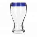 Beer Glass, 16 oz., with cobalt blue rim, anneal treated, dishwasher and microwave safe, hand blown, glass, Aruba (H 6-1/4"; T 3"; B 2-5/8"; D 3-3/8") (12 each per case)