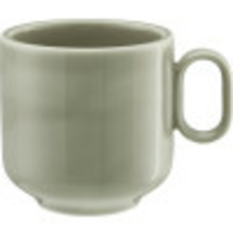 (Formerly Syracuse China) Coffee Mug, 10 oz., 3-3/8" dia. x 3-3/8"H, with handle, stackable, microwave/dishwasher safe, porcelain, Schonwald Shiro Glaze, steam (6 each per case)