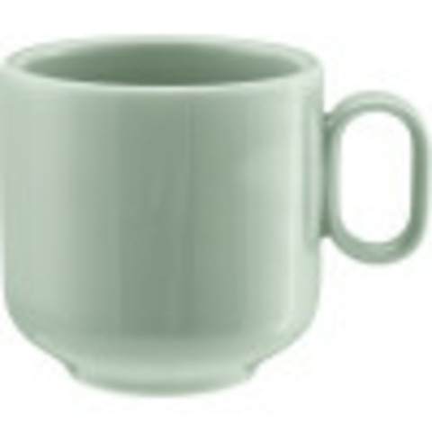 (Formerly Syracuse China) Coffee Mug, 10 oz., 3-3/8" dia. x 3-3/8"H, with handle, stackable, microwave/dishwasher safe, porcelain, Schonwald Shiro Glaze, frost (6 each per case)