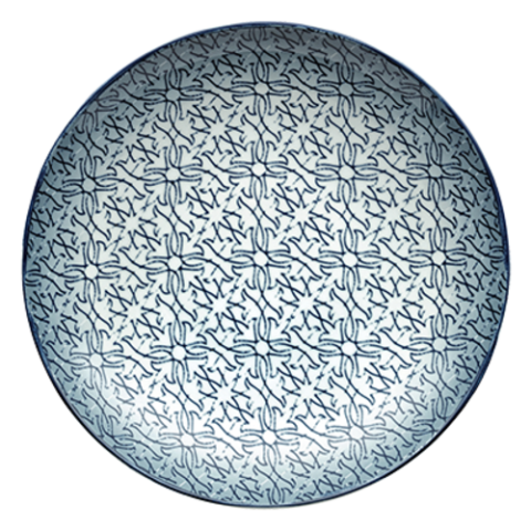 (Formerly Syracuse China) Plate, 6-2/3" dia., round, coupe, scratch resistant, porcelain, Schonwald, Shabby Chic, dark blue with ornaments (12 each per case)