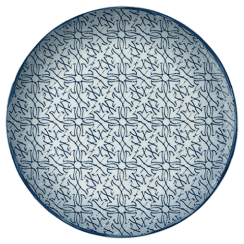 (Formerly Syracuse China) Plate, 12-5/8" dia., round, coupe, scratch resistant, porcelain, Schonwald, Shabby Chic, dark blue with ornaments (6 each per case)