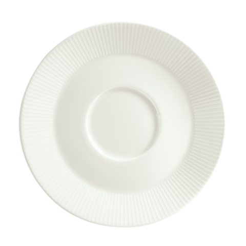 (Formerly Syracuse China) Saucer, 6-1/4" dia., 2-1/8" dia. well, round, fully vitrified, porcelain, Connect Radial pattern & shape, Schonwald, Continental White™ body color (12 each per case)