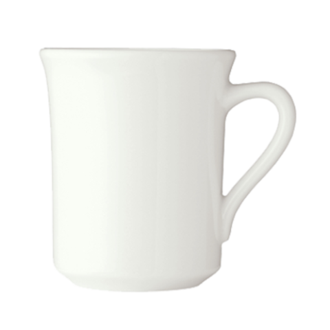 (Formerly Syracuse China) Mug, 8-1/2 oz., 3-1/4" dia. x 3-3/8"H, 2" dia. foot, with handle, fully vitrified, porcelain, Slenda® pattern & shape, White Royal Rideau™ body color (36 each per case)
