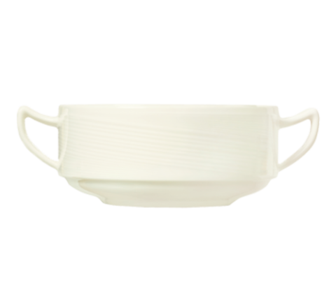 (Formerly Syracuse China) Soup Cup, 12-1/2 oz., 6-1/8" dia. x 2"H, 2-5/8" dia. foot, (2) handles, stackable, fully vitrified, porcelain, Reserve By Libbey, Silk (fits saucer 987659393) (36 each per case)