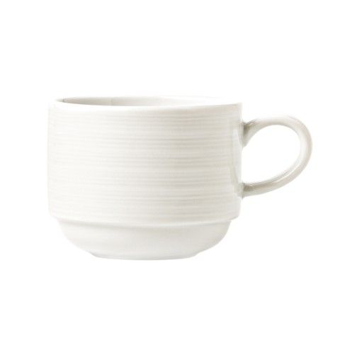(Formerly Syracuse China) Cup, 9 oz., 3-3/8" top dia. x 2-3/4"H, with handle, stackable, embossed, highly polished foot, porcelain, Microban® fully vitrified glaze, Galileo™ pattern & shape, Constellation™, Lunar White™ body color (fits saucer 999013 500) (36 each per case)