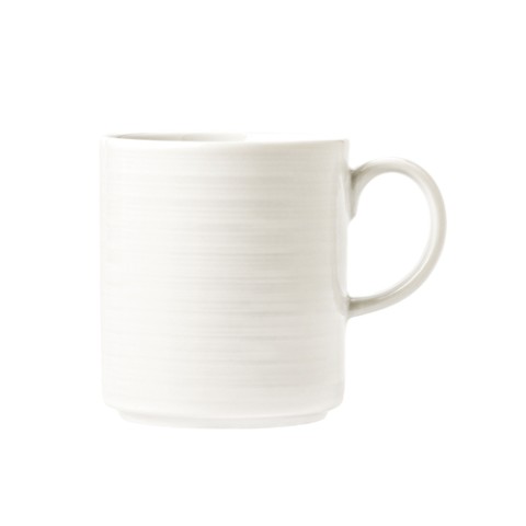 (Formerly Syracuse China) Mug, 12 oz., 3-3/8" top dia. x 3-3/4"H, with handle, stackable, embossed, highly polished foot, porcelain, Microban® fully vitrified glaze, Galileo™ pattern & shape, Constellation™, Lunar White™ body color (36 each per case)