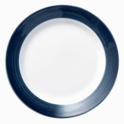 (Formerly Syracuse China) Plate, 9" dia., round, highly polished foot, porcelain, Microban® fully vitrified glaze, Rigel™ Banded pattern & shape, Constellation™, Lunar White™ body color, steel blue band (24 each per case)