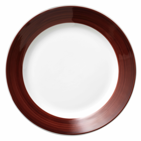 (Formerly Syracuse China) Plate, 9" dia., round, highly polished foot, porcelain, Microban® fully vitrified glaze, Rigel™ Banded pattern & shape, Constellation™, Lunar White™ body color, apple butter band (24 each per case)