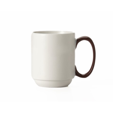(Formerly Syracuse China) Comfort Mug, 8-1/2 oz. 2-7/8" dia. x 3-5/8"H, with handle, highly polished foot, porcelain, Microban® fully vitrified glaze, Rigel™ Banded pattern & shape, Constellation™, Lunar White™ body color, apple butter handle (36 each per case)