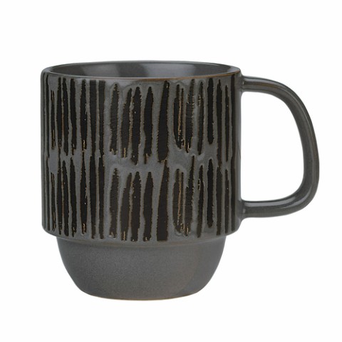 (Formerly World Tableware) Mug, 12 oz., stackable, tribal design, dishwasher and microwave safe, stoneware, gray, Afar (H 3-7/8"; W 4 -7/8" L 3-3/8) (12 each per case)