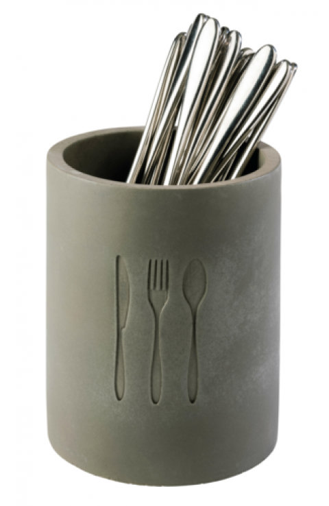Flatware Bin, 4-3/8" dia. x 5-5/8"H, round, silicone insert, utensil design, drain hole, concrete, Element, APS® Germany (12 each per case)