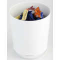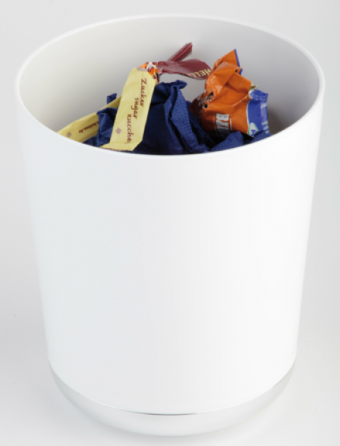 Table Waste/Cutlery Bin, 44 oz., 5-1/8" dia. x 6-1/8"H, round, stackable, hand wash only, SAN, white body, chrome bottom APS® (24 each per case)