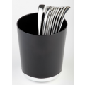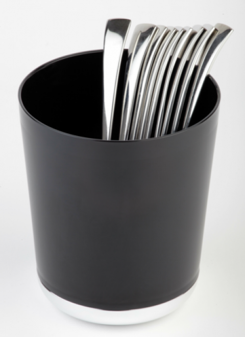 Table Waste/Cutlery Bin, 44 oz., 5-1/8" dia. x 6-1/8"H, round, stackable, hand wash only, SAN, black body, chrome bottom APS® (24 each per case)