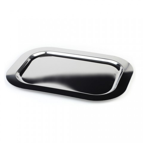 Tray, 19-5/8"L x 15"W x 7/8"H, rectangular, stackable, rounded corners, plain edge, dishwasher safe, 18/0 stainless steel, Finesse, APS® Germany (5 each per case)