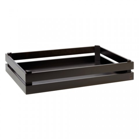 Superbox Foundation, 21-7/8"L x 13-7/8"W x 4-1/4"H, rectangular, stackable, accommodates GN 1/1 pan, use as: basket, riser, or base for beverage ice bin, non-slip, acacia wood, black, APS® Germany (1 each per case)