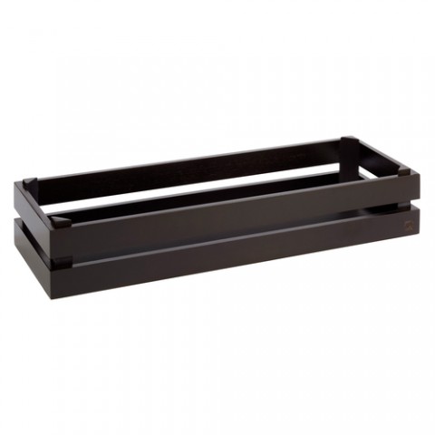 Superbox Foundation, 21-7/8"L x 7-3/8"W x 4-1/4"H, rectangular, stackable, accommodates GN 2/4 pan, use as: basket, riser, or base for beverage ice bin, non-slip, acacia wood, black, APS® Germany (1 each per case)