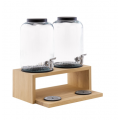 Beverage Dispenser, 237 oz, 8-1/4"L x 13-5/8"W x 18-1/2"H, oak wood base (waterproof lacquered), (2) glass container, stainless steel tap, melamine coaster, removable base plate, Valo, APS Germany (1 each per case)
