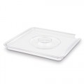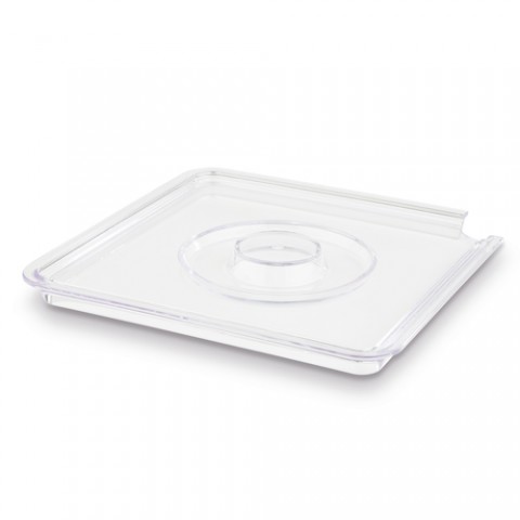 Cover, 7-7/8" x 5/8"H, flat, square, stackable, with spoon notch, dishwasher safe, SAN, clear, Universal, Plus, APS® Germany (1 each per case)