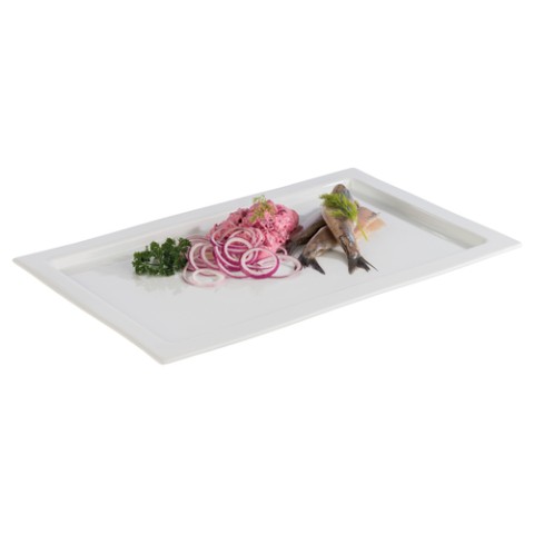 Tray, GN 1/1, 20-7/8"L x 12-7/8"W x 7/8"H, rectangular, stackable, microwave/dishwasher safe, porcelain, white, Frames, APS® Germany (6 each per case)