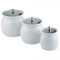 Dressing Pot, 27-1/8 oz., 5-1/8" dia. x 6-1/8"H, small, round, stainless steel lid with notch, dishwasher safe, porcelain, white, APS® Germany (12 each per case)