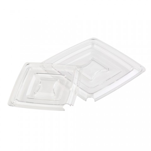Cover, 7-3/4" x 5/8"H, flat, square, stackable, with spoon notch, dishwasher safe, SAN, clear, Pure, APS® Germany (1 each per case)
