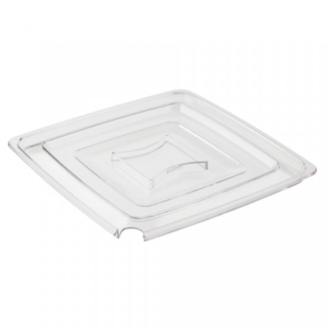 Cover, 10-1/8" x 5/8"H, flat, square, stackable, with spoon notch, dishwasher safe, SAN, clear, Pure, APS® Germany (1 each per case)