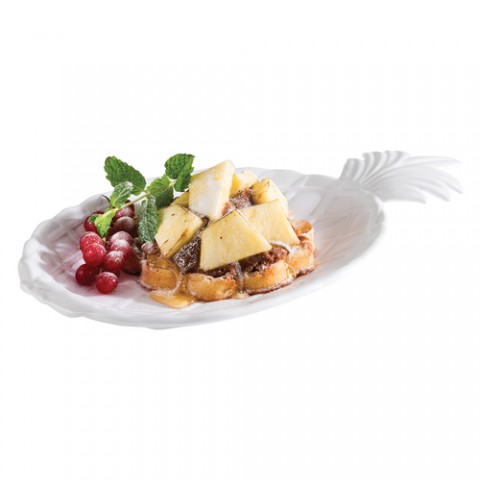 Tray, 11-7/8"L x 6-3/4"W x 1"H, pineapple shaped, stackable, dishwasher safe, melamine, white, APS® Germany (12 each per case)