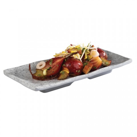 Tray, 7-7/8"L x 3-3/4"W x 1"H, rectangular, stackable, dishwasher safe, melamine, patterned concrete, Element, APS® Germany (8 each per case)