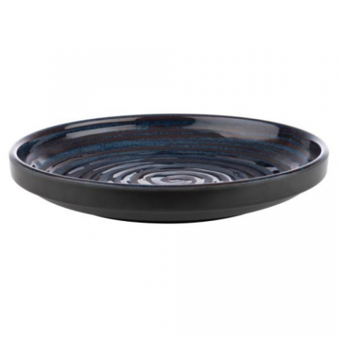 Loops Plate, 9" dia., round, high rim, stackable, scratch & shock proof, acid resistant, dishwasher safe, non-slip feet, melamine, grey/blue, APS Germany (6 each per case)