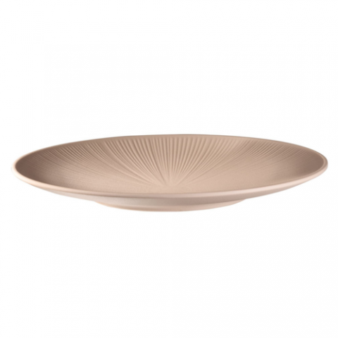 Nero Plate, 13" dia. x 1-3/8"H, round, stackable, scratch & shock proof, acid resistant, dishwasher safe, melamine, oatmeal, ribbed texture & soft matte finish, APS Germany (6 each per case)