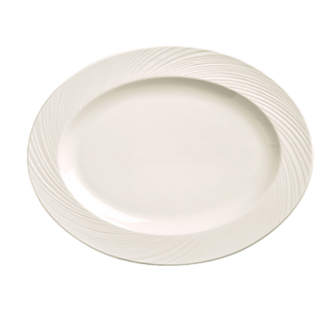 (Formerly World Tableware) Platter, 13-1/4" x 10-1/4", oval, embossed rim, fully vitrified, porcelain, bright white, Basics Orbis (12 each per case)