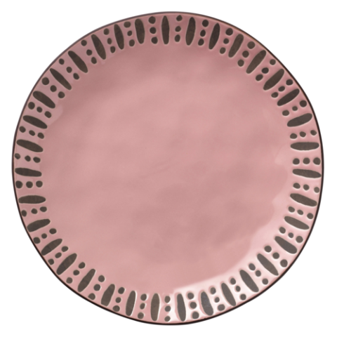 (Formerly World Tableware) Plate, 10-5/8" dia., round, dishwasher & microwave safe, stoneware, pink with lines & dots, Dulcet (12 each per case)