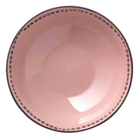 (Formerly World Tableware) Serving Bowl, 9-1/8" dia. x 2-7/8"H, round, dishwasher & microwave safe, stoneware, pink with dots, Dulcet (12 each per case)