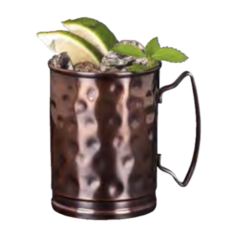 (Formerly World Tableware) Moscow Mule Mug, 14 oz., tall, solid copper plating with stainless steel base, hammered finish, antiqued copper (H 4"; T 2-7/8"; F 2-5/8"; D 4") (12 each per case)