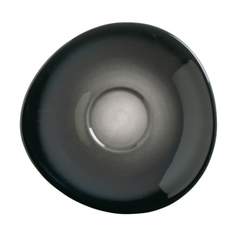 Saucer, 6-1/4", 2" well, organic shape, fully vitrified, porcelain, high gloss finish, Reserve by Libbey, Obsidian (12 each per case)