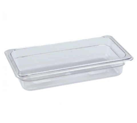 Food Pan, 2.6 qt., 1/3 size, 2-1/2" deep, anti- jam, temperature range from -40°F to 212°F/-40°C to 100°C, polycarbonate, clear, NSF