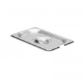 Steam Table Pan Cover, 1/9 size, flat, notched with handle, 18/8 stainless steel