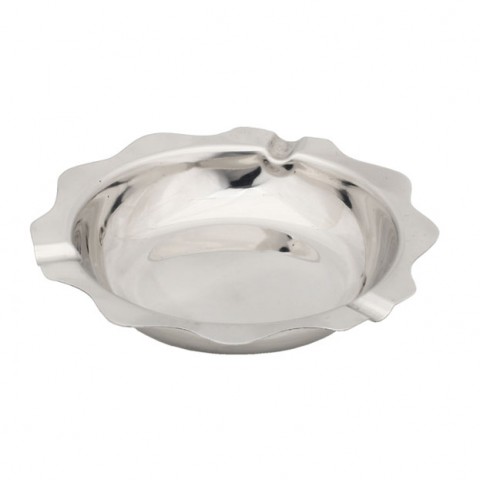 Ash Tray, 5-1/4" dia. x 1"H, round, scalloped, stainless steel, mirror polished
