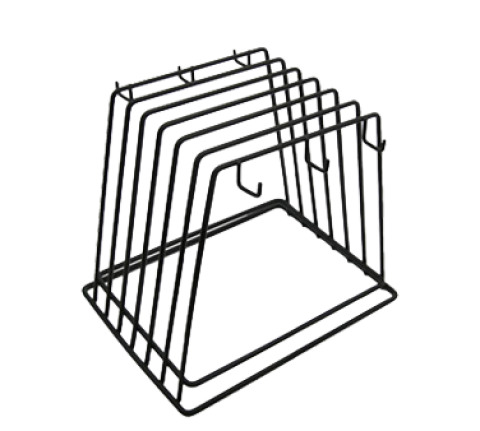 Cutting Board Rack, 6 slots, with hanging hooks for cutting board brushes, fits all cutting boards except PCB69, steel