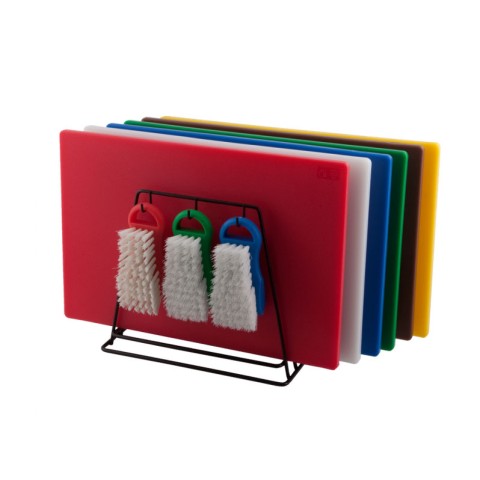 Cutting Board Set, 12" x 18" x 1/2", 6 boards, 6 brushes and rack, assorted colors