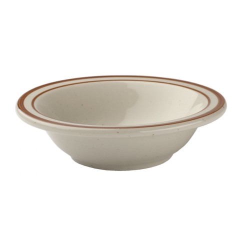 Grapefruit Bowl, 12 oz., 6-5/8" dia., round, dishwasher, microwave & oven safe, chip resistant, fully vitrified, brown speckled with solid brown line, Tucson