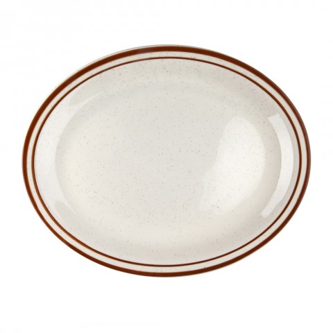 Platter, 11-1/2" x 9-1/4", oval, narrow rim, dishwasher, microwave & oven safe, chip resistant, fully vitrified, brown speckled with solid brown line, Tucson