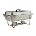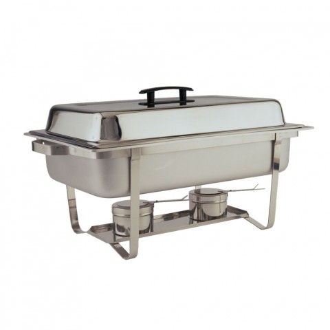 Economy Chafer, full size, 8 qt., complete with 4" deep water pan, 2-1/2" deep food pan, dome cover, (2) stainless steel fuel holders, folding stainless steel frame