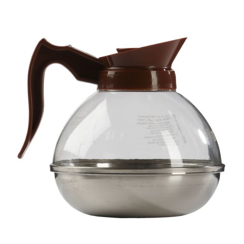 Coffee Pot Decanter, 64 oz., plastic body with stainless steel base, brown plastic handle