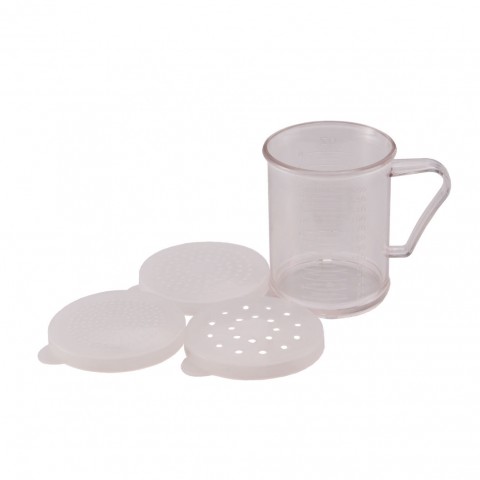 Dredge, 10 oz., with three lids: coarse, medium, and fine, polycarbonate, clear
