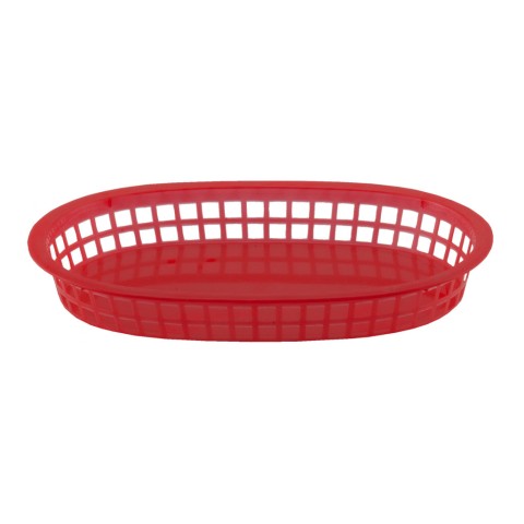 Fast Food Basket, 10-3/4" x 7" x 1-1/2", oblong, flat bottom, plastic, red