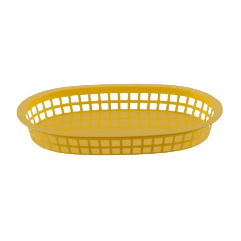 Fast Food Basket, 10-3/4" x 7" x 1-1/2", oblong, flat bottom, plastic, yellow